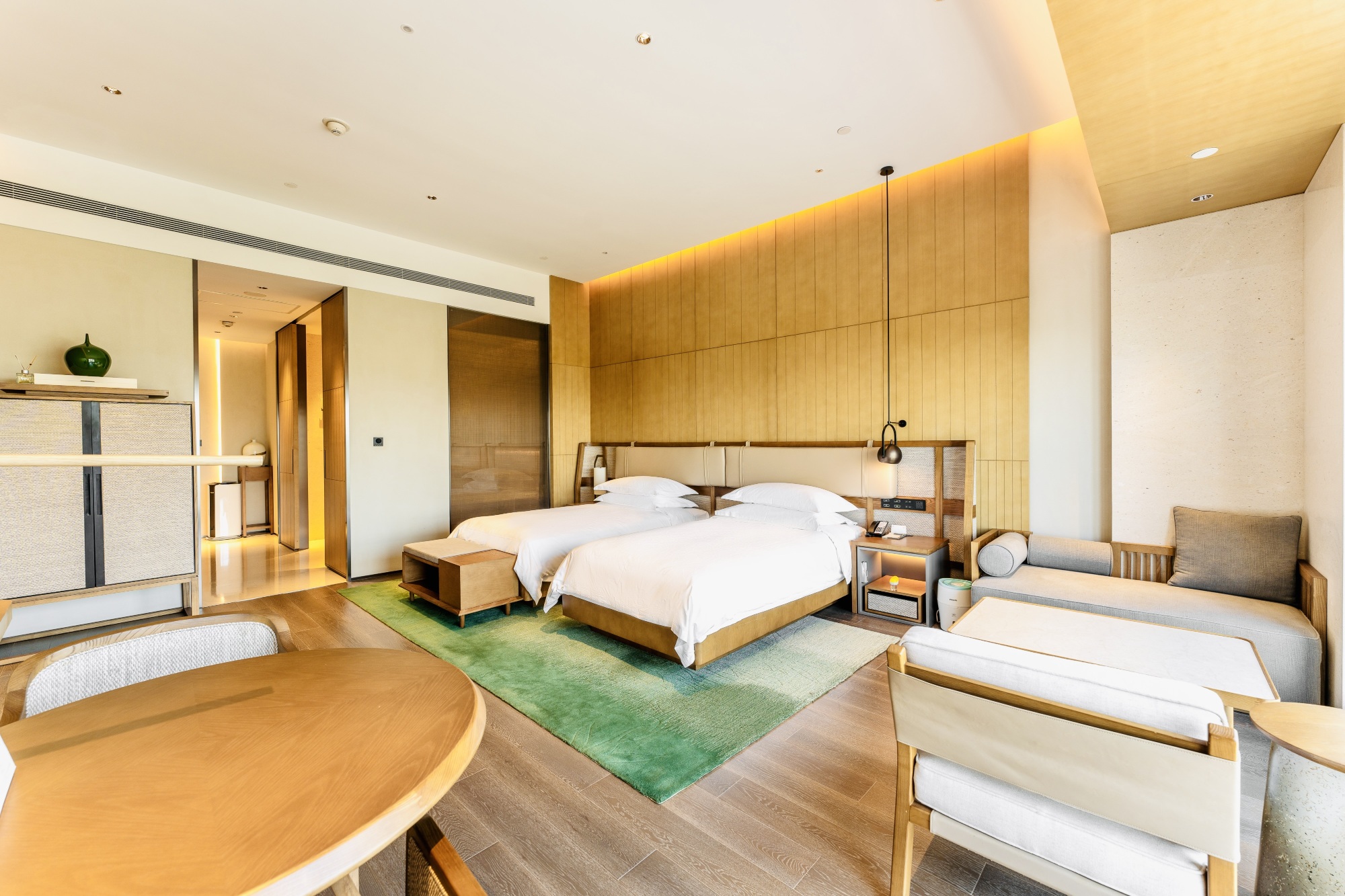 河北宾馆·安悦落地于正定——自古以来被帝王将相视为名城福地,素有“三山不见,九桥不流,九楼四塔八大寺,二十四座金牌坊”的真定府、常山郡,安悦正是延续着正定的历史气蕴,联手世界著名设计团队,共同协力打造,将时间融入到空间,处繁华之中,于浮华之外,河北宾馆·安悦为忙碌的都市人创建了一个回归自然,返璞归真的新中式禅意修心之地。河北宾馆·安悦采用低密度建筑设计,占地面积47246平米,正所谓“天下之大隐于此,胸怀之大藏于心”大隐闹市,足未入户,已醉三分,每位入住的宾客都能在这里找到自己最理想的生活状态。